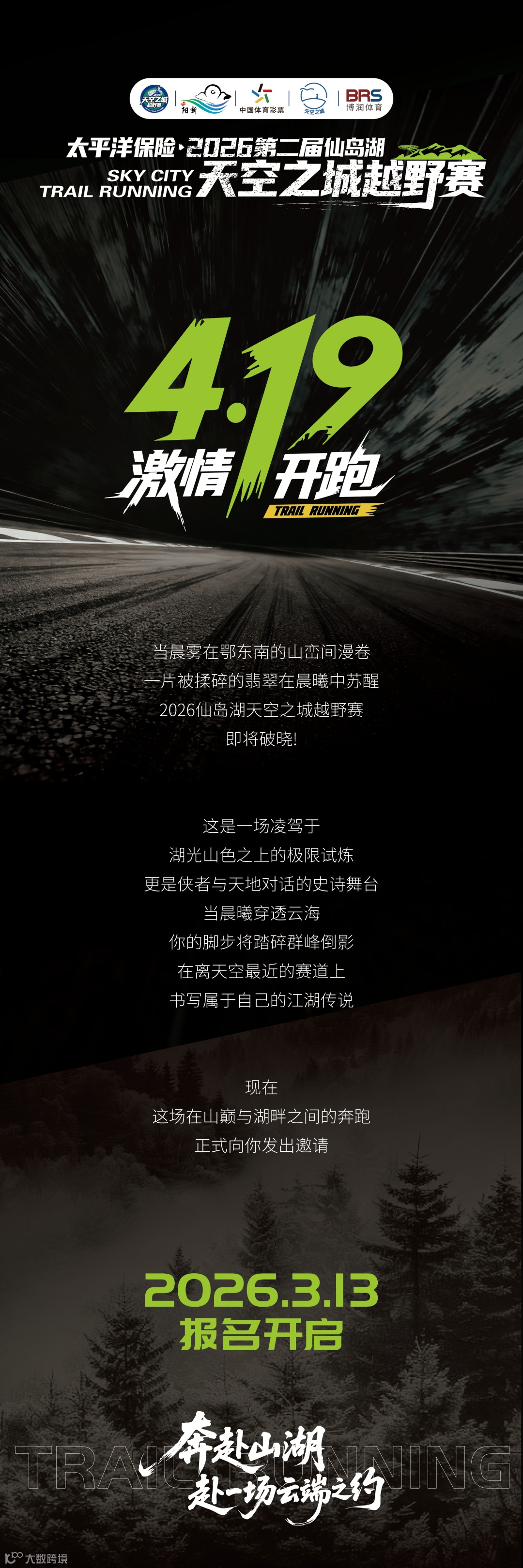 大众选手公开报名参赛,可通过官方公众号“仙岛湖天空之城越野赛”或“RUN润跑”公众号进行报名并完成网上缴费。