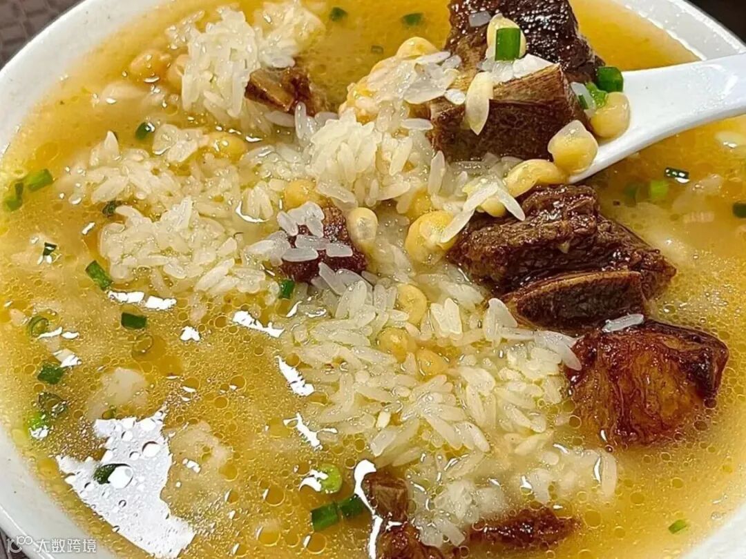 怎么吃?两种吃法,两种境界。一勺糯米一口汤,就着泡萝卜,清清爽爽;或者直接把整碗糯米倒进元豆汤里——软糯的米粒被肉香浓汤融化在口腔,是江汉平原最温柔的早安吻。