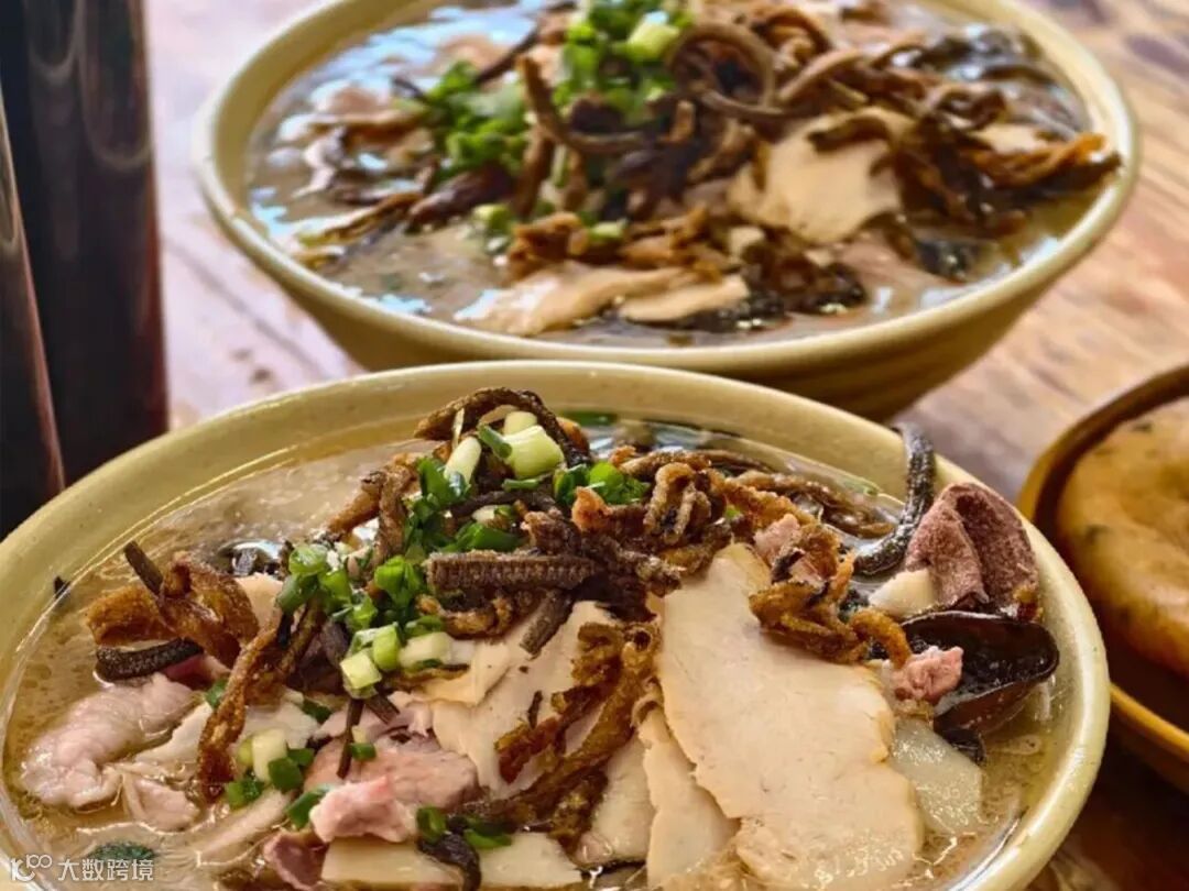 清朝光绪年,码头工人天不亮就要上工,急需一碗扛饿的热食。于是有了这碗面:鳝鱼骨、老母鸡、猪大骨,熬足整整一夜,汤白如乳,浓到挂碗。碱水面过冷再烫,爽滑劲道,铺上鳝鱼丝、鸡丝、瘦肉片。