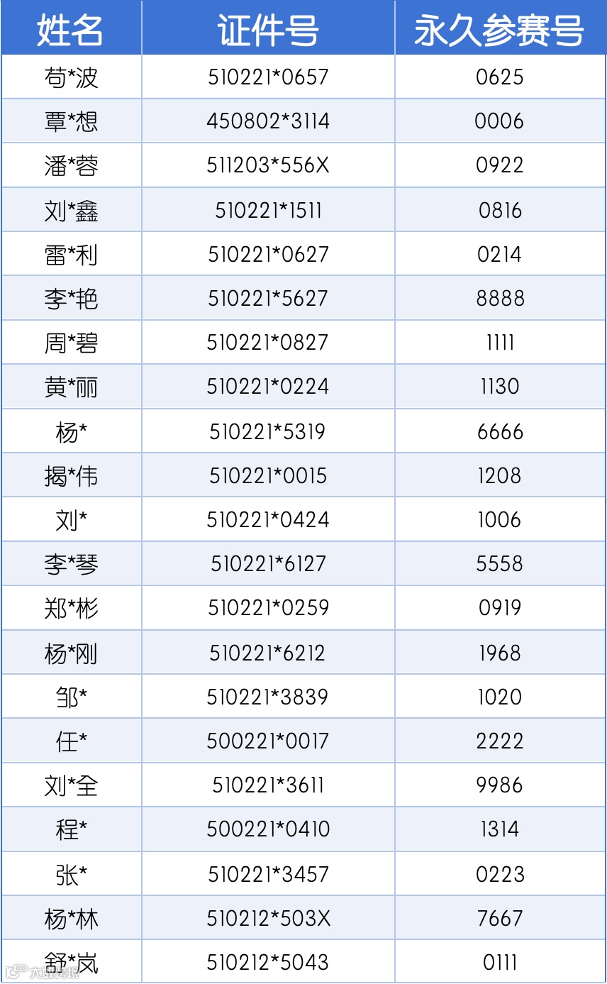 3、永久参赛号码一经选定,不做修改。