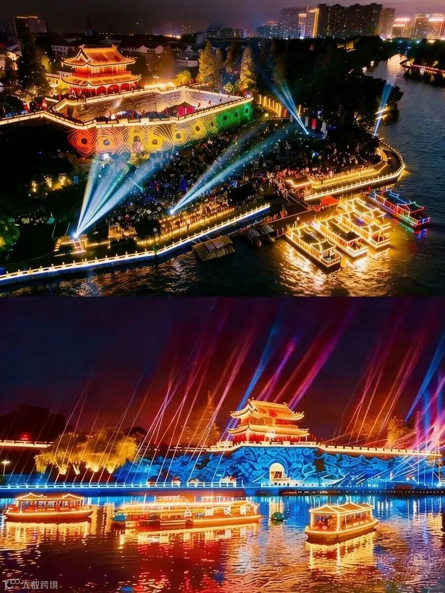 当白日的市井烟火渐息,宾阳楼的光影秀便成为最瞩目的盛宴。它以护城河的潺潺水流为天然舞台,以巍峨的古城墙为巨幅荧幕,借助绚丽灯光,将关羽的忠勇传奇、楚地的典雅风韵、三国时代的金戈铁马一一呈现,精彩演绎出荆州深厚的文化底蕴。