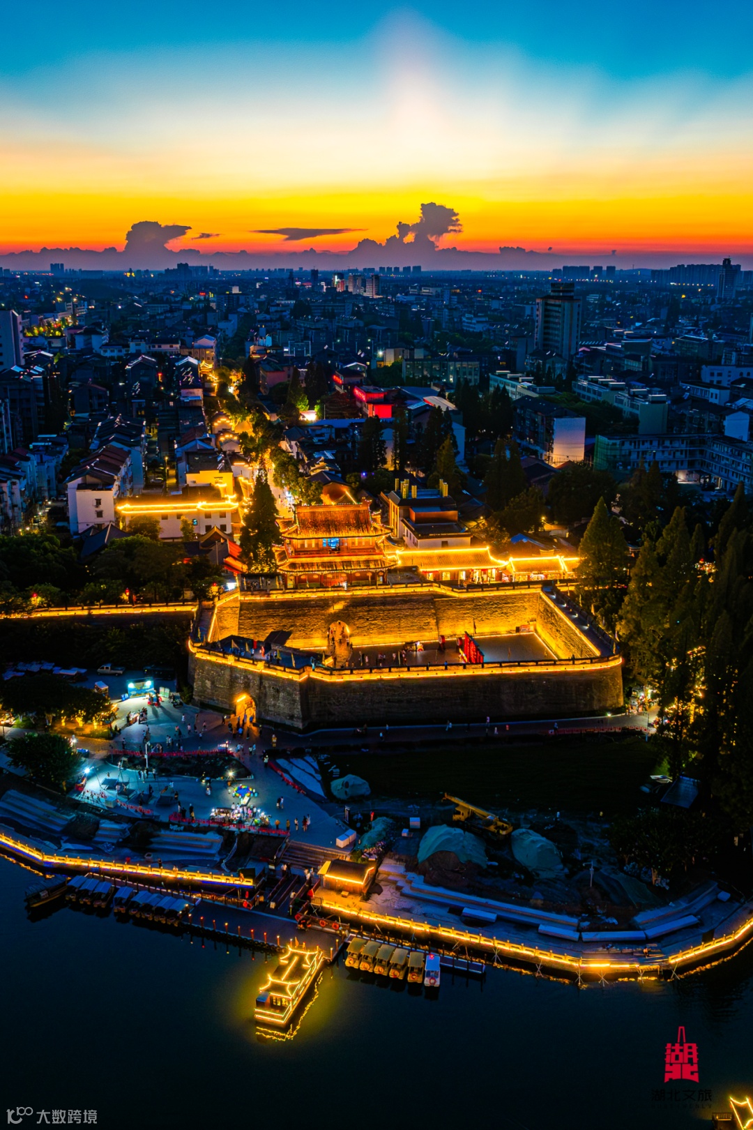 荆州古城是日夜畅游的起点与核心。当暮色为城墙披上柔光,身着战国袍的游人穿梭其间,衣袂轻扬。登临宾阳楼,既可俯瞰古城全景,也是拍摄古风美照的绝佳地点。以整个古城为舞台的大型沉浸式文旅项目 “荆州十二时辰” 全天候上演,带领游客跨越千年,展开一场生动的古今对话。
