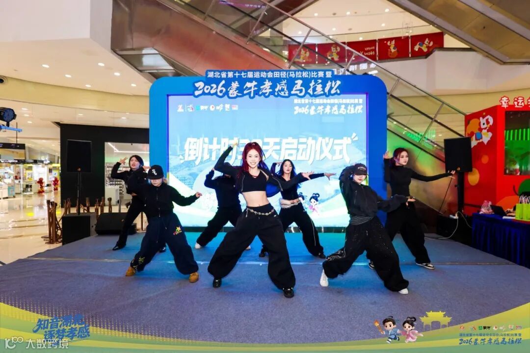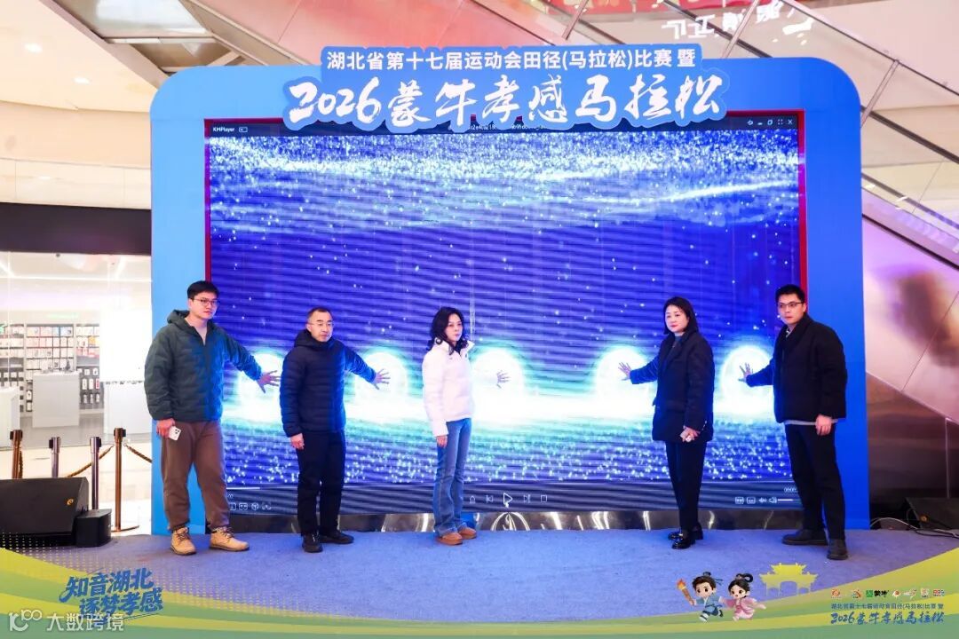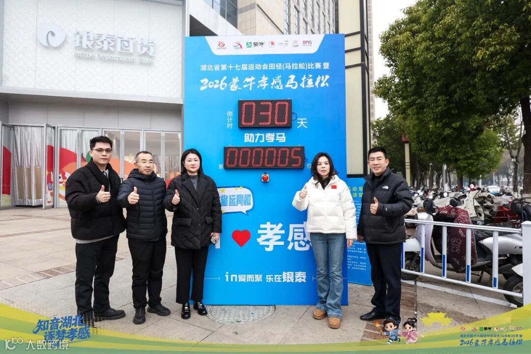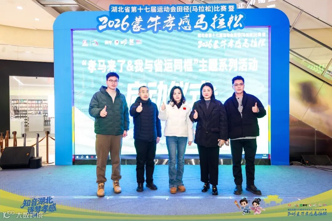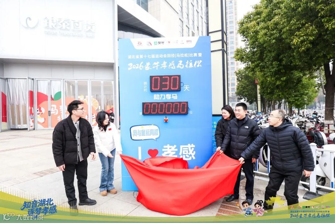 2月5日下午,湖北省第十七届运动会田径(马拉松)比赛暨2026蒙牛孝感马拉松倒计时30天暨“我与省运同框”主题系列活动启动仪式在孝感银泰百货圆满举行。孝感市文化和旅游局群众体育科科长李敏捷、孝感银泰百货总经理张莹、湖北三江泉饮料有限公司总经理郑朝光、孝感麻糖米酒有限责任公司电商主管潘文豪、赛事组委会市场开发总监洪光磊以及孝感融媒体中心、孝感自媒体协会、跑友代表、市民朋友们出席了本次活动。