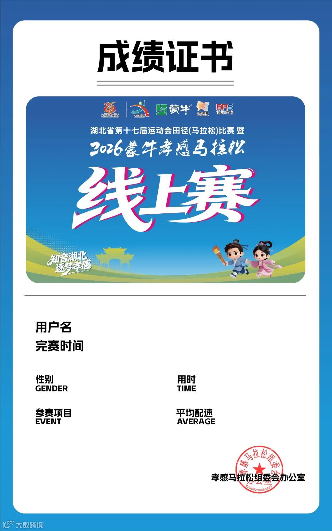 “省运有我,孝马同行”2026蒙牛孝感马拉松线上赛正式开启!