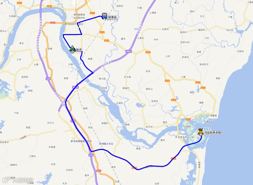 线路二:马拉松终点-赛事起点(停靠点)-琼海站