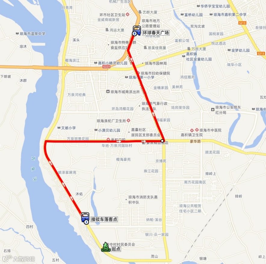 接驳点位:琼海市嘉积镇政府南侧主路 200m
