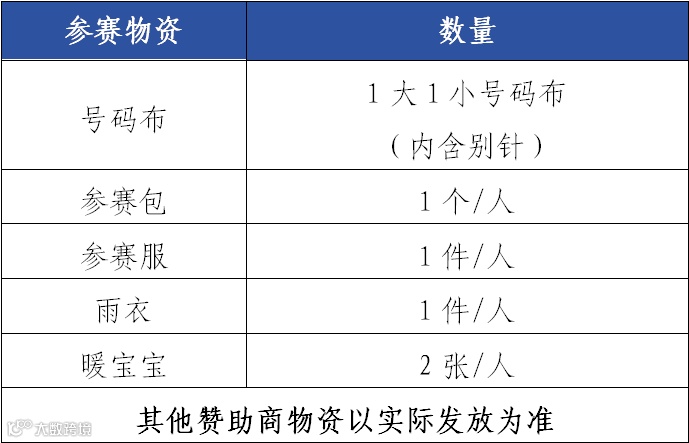 2.服装尺码为常规码,请按照报名时填写的衣服尺码领取。因参赛服每个尺码的数量有限,参赛服一经发放,不予调换;如有尺码不符,建议选手之间自行在服装尺码互调区进行调换。