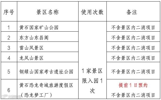 5、“跟着赛会游黄石”礼遇卡(2025黄石半程马拉松)持有者在礼遇卡有效期内,可任意游玩14家黄石景区,每家景区限免费入园1次,其中黄石恐龙奇域旅游度假区(恐龙梦工厂)需提前1日预约;