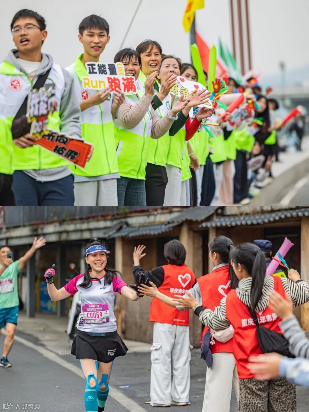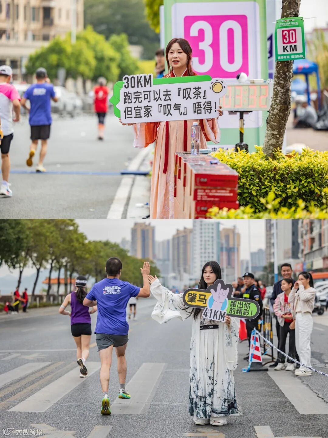 44位身着汉服的赛道啦啦宝贝在各公里点手持肇马宣传标语,为赛道点缀了独特的文化趣味。