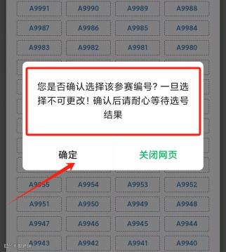 5、选择心仪号码,并点击确认(注:号码一旦选定,无法更改)