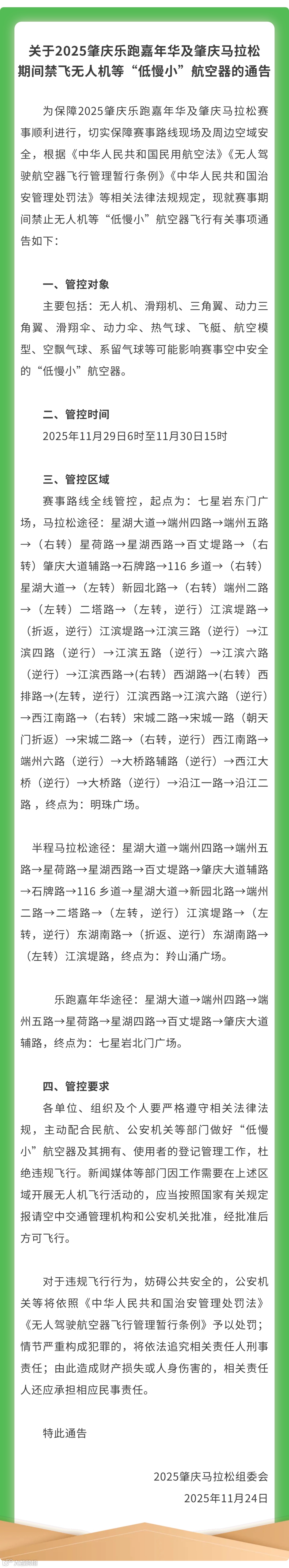 护航肇马,你我同行!这份赛事禁飞通告请查收→
