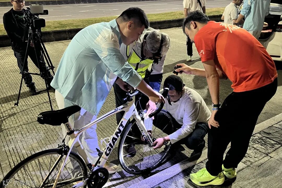 整个赛道丈量过程工作量大,花了近4个小时。31日凌晨0点,温氏股份·2025云浮新兴半程马拉松赛道丈量工作顺利完成。