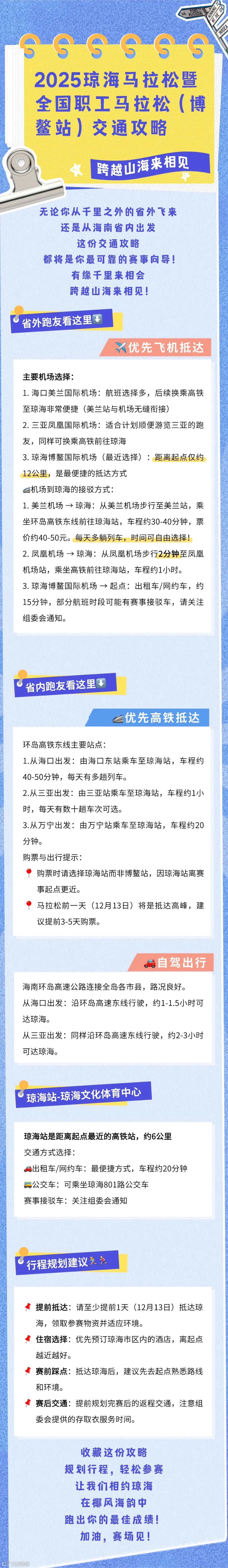 交通攻略|跨越山海来相见,省内外跑友可以这样抵达琼海