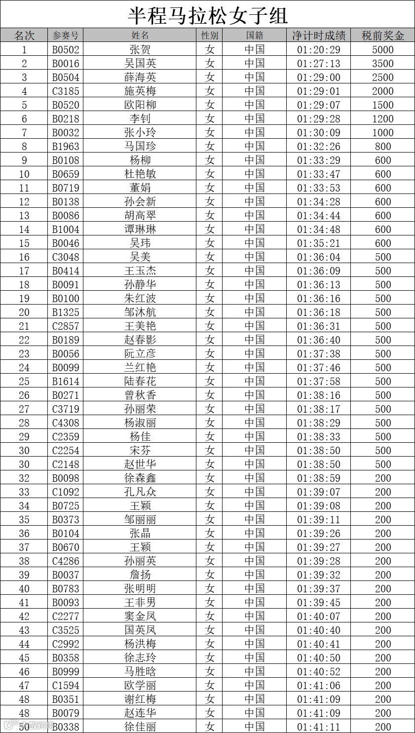 上述奖金将按照本次赛事竞赛规程规定,征收20%个人所得税,由查干湖马拉松组委会代收代缴。