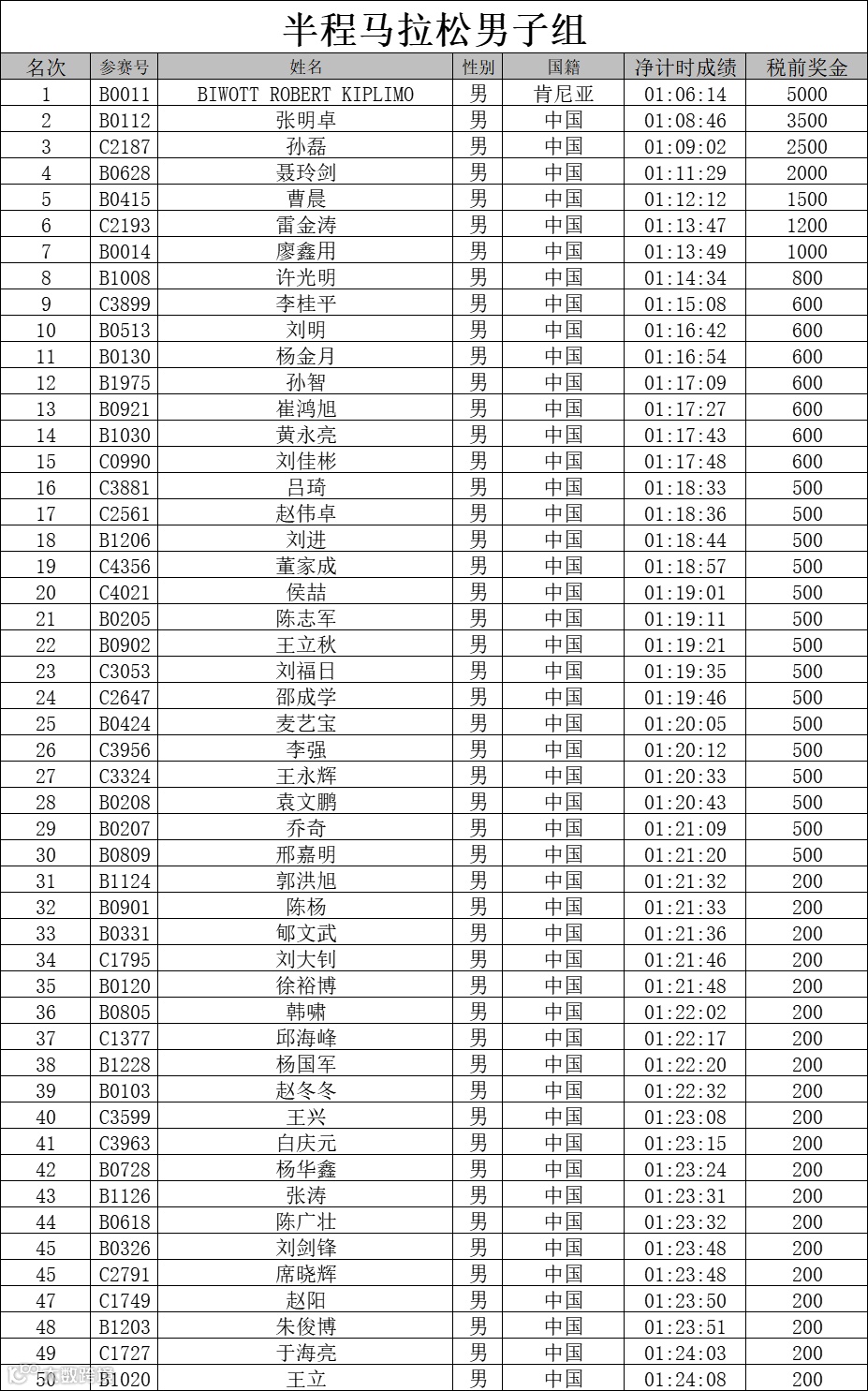 匹克体育2025查干湖马拉松于9月21日圆满结束。根据竞赛规程,马拉松项目名次奖的男女前三名按照枪声成绩进行排名,其他名次按照净计时成绩进行排名;半程马拉松项目均按照净计时成绩录取名次,具体奖金如下表: