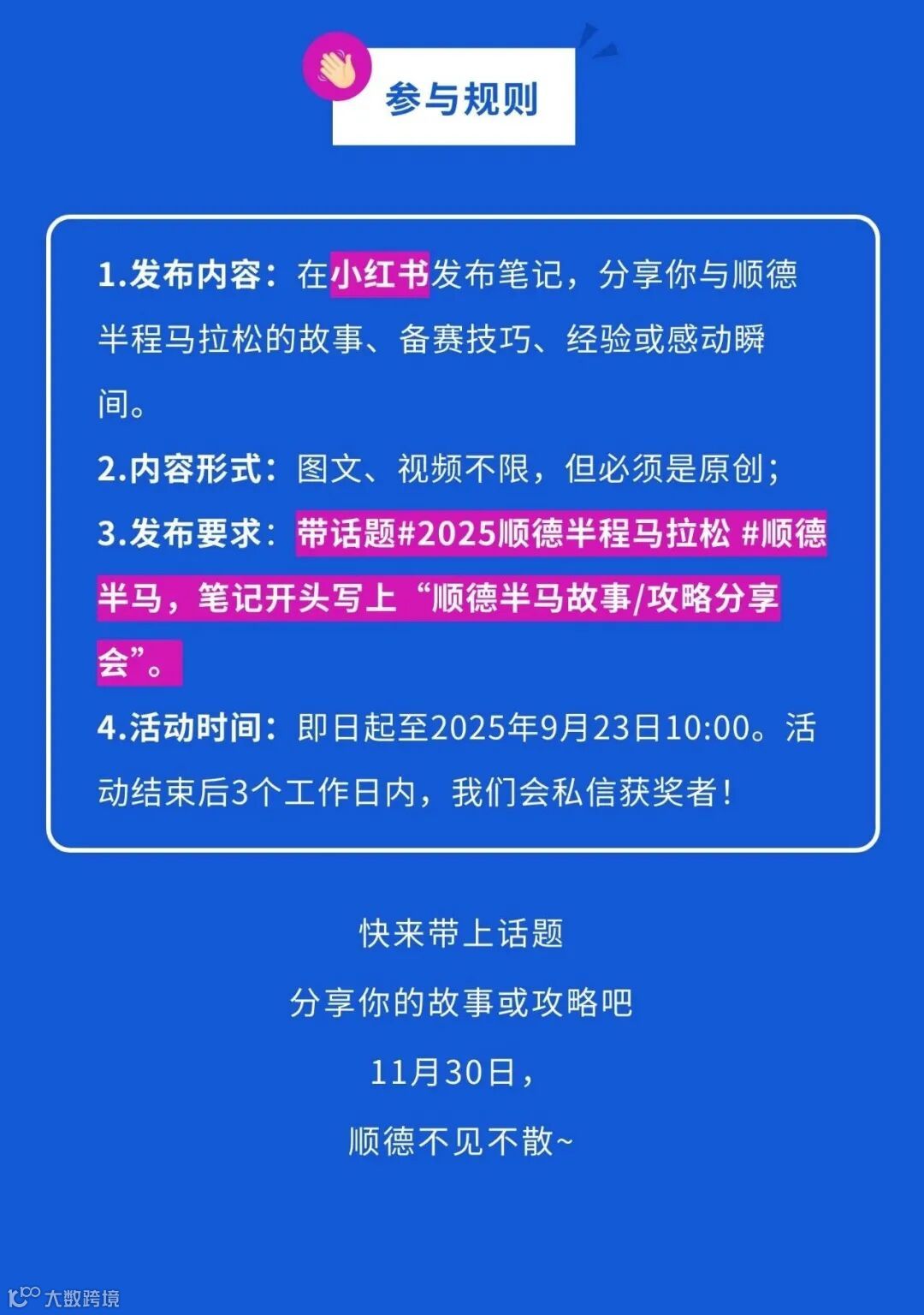 丰厚奖品,直通名额!顺德半马故事/攻略线上分享会开始啦!