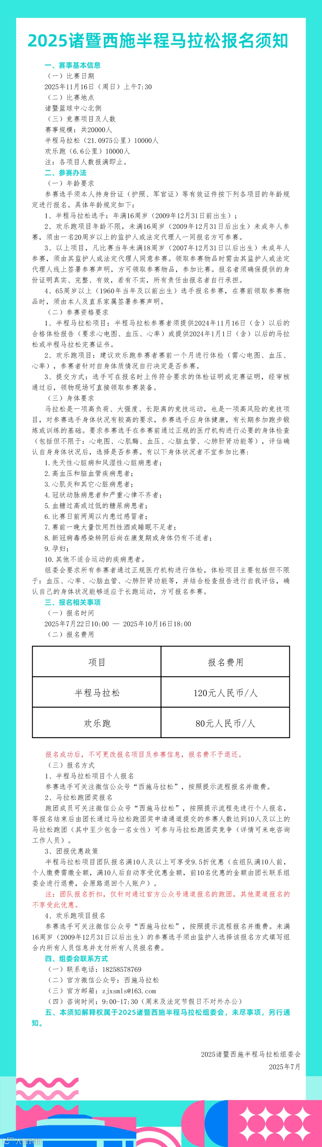 赛事讯息 | 2025诸暨西施半程马拉松《报名须知》