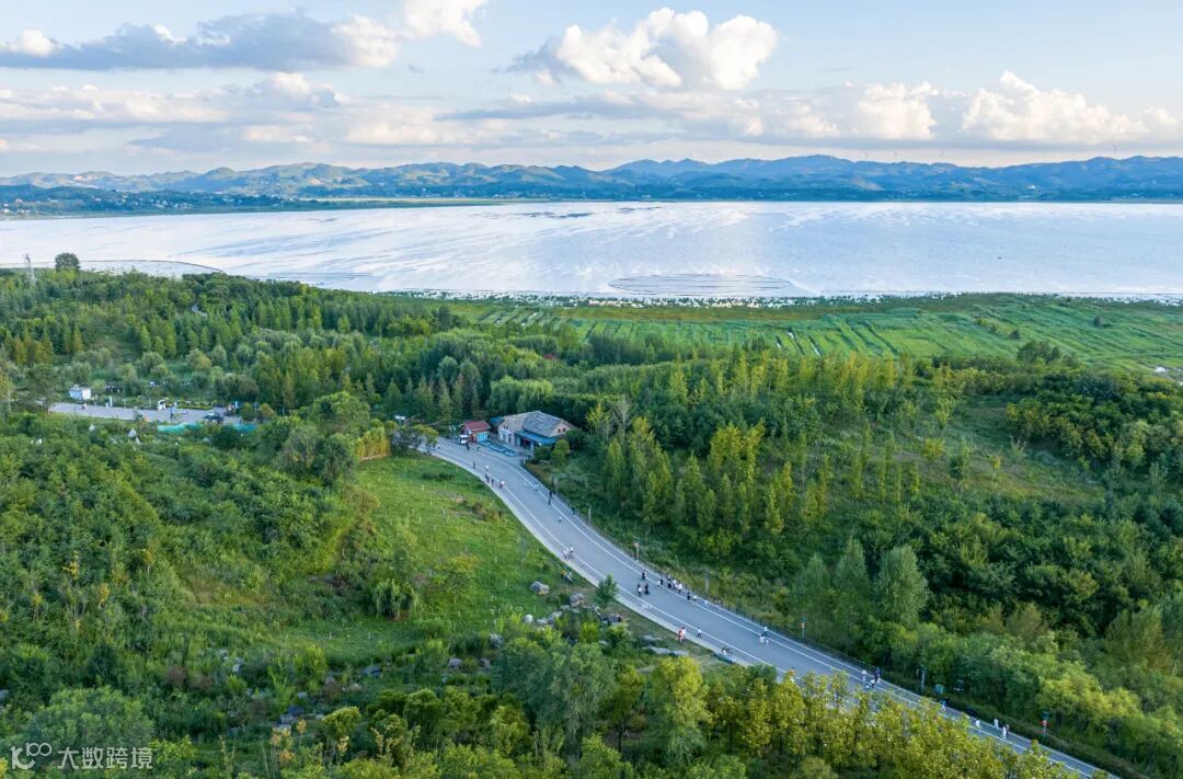 马拉松参赛者跑过草海北坡
