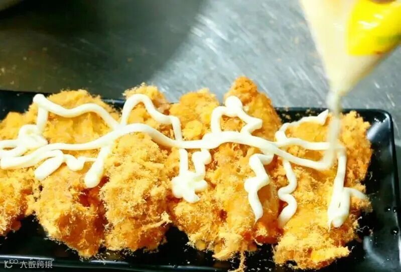 肉松茄子这种吃法相当新鲜,选用规格大的茄子,切至同等大小形状,裹上粉丢进油锅里热个身,炸至颜色金黄,起锅之后,在肉松里打个滚儿,再挤上一层沙拉酱。