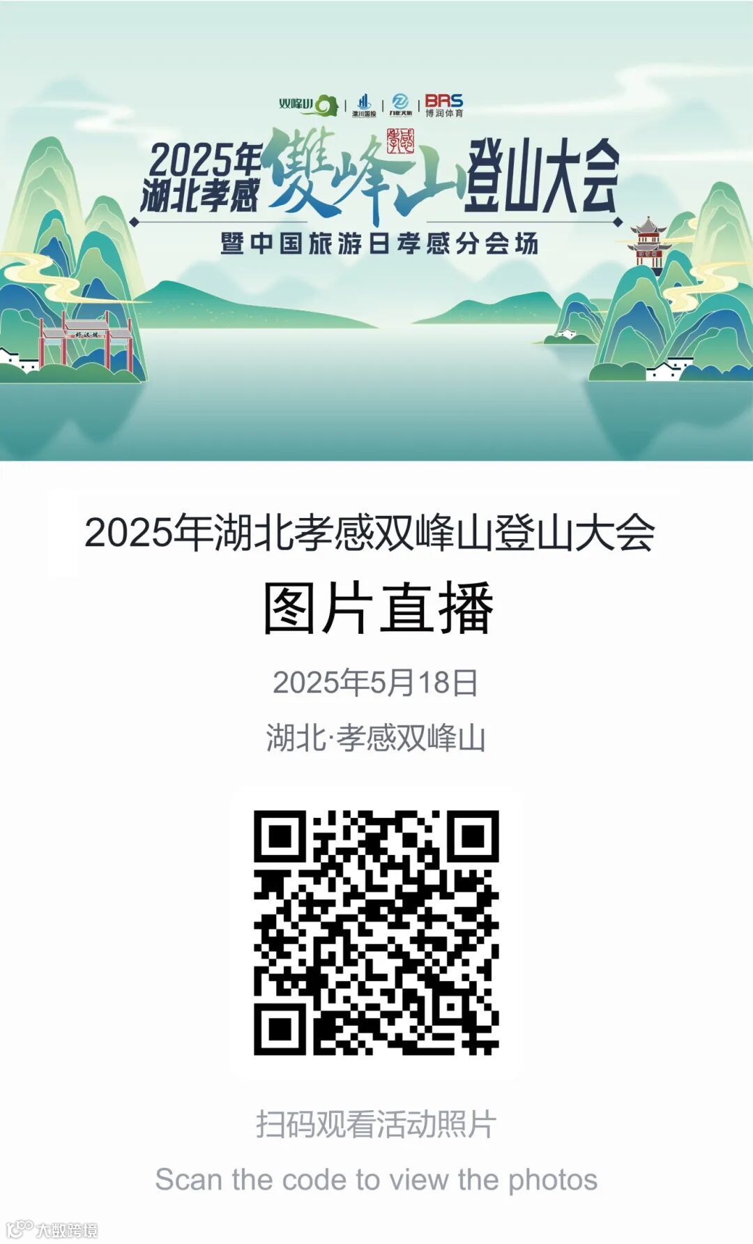 搜索微信公众号孝感登山大会并点击关注,点击下方图片直播,即可进入赛事相册,输入自己的号码牌(或人脸识别),即可找到自己的比赛照片哦~