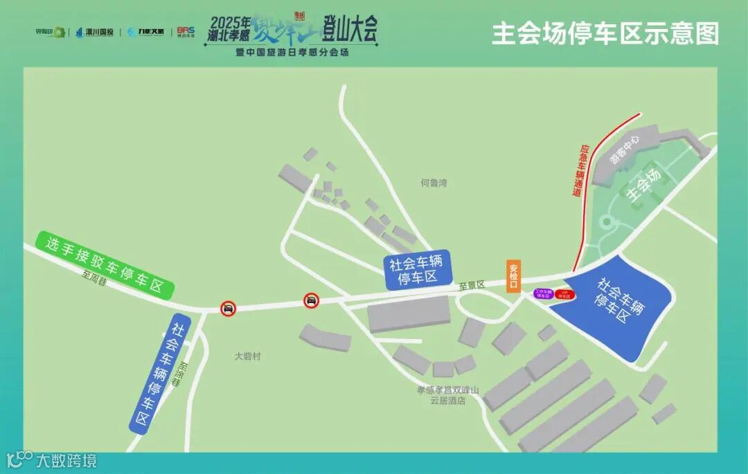由于赛事当天主会场附近道路进行交通管制,从孝感市前往双峰山推荐的行车路线:黄陂大道→桃花驿大道→王杨线→双峰山旅游区。主会场附近所有车辆只能从026县道-涂巷方向道路进入。