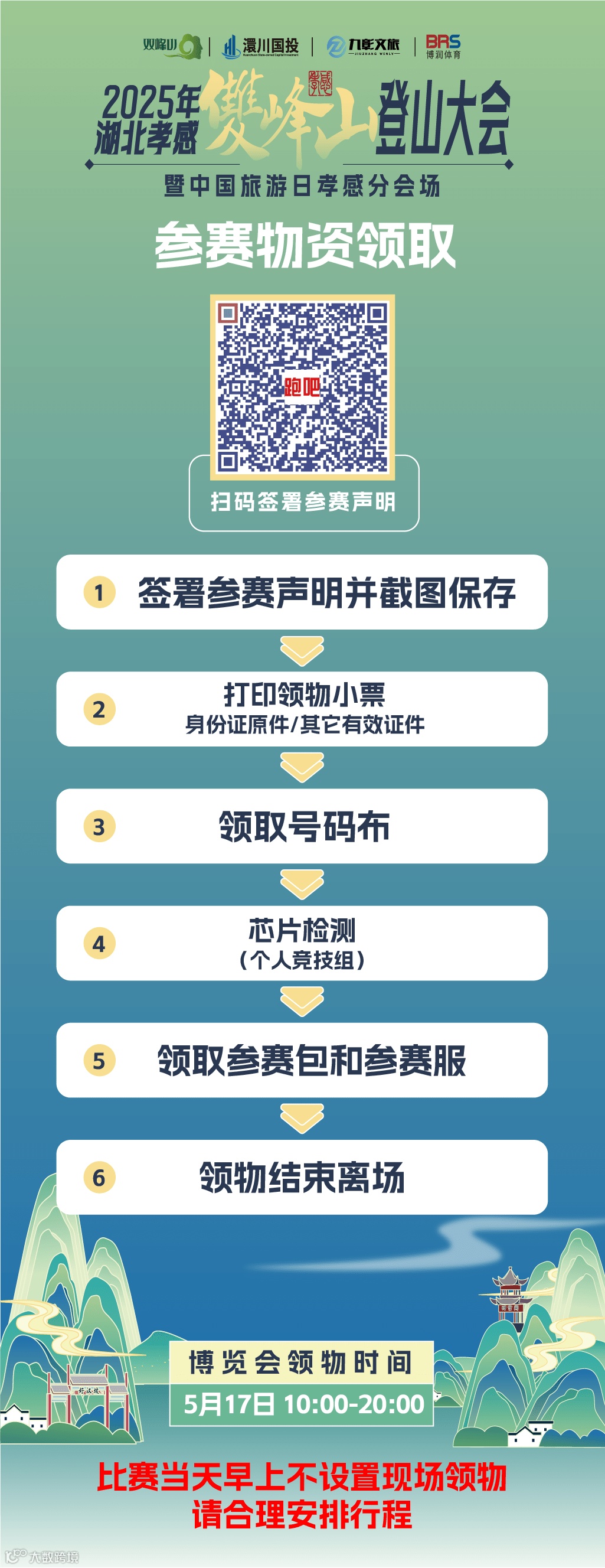 请选手严格遵守此时间领取参赛物资,领物通道将于5月17日20:00准时关闭,请参赛选手合理安排时间。