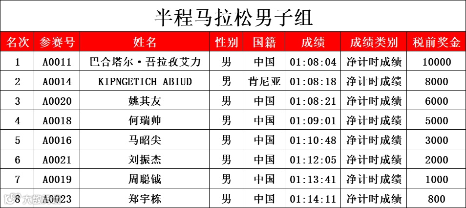 半程马拉松男子前八名