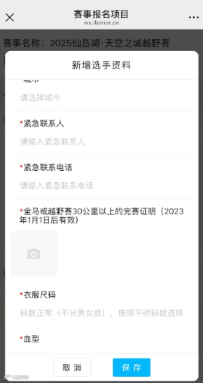 进入赛事报名页面后,点击【添加选手报名资料】,填写新增选手个人资料,如姓名、证件信息、联系方式等信息后点击【保存】