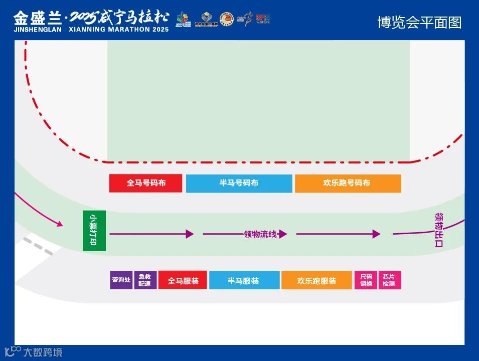 请按图中箭头方向前进,并到对应区域领取参赛物品