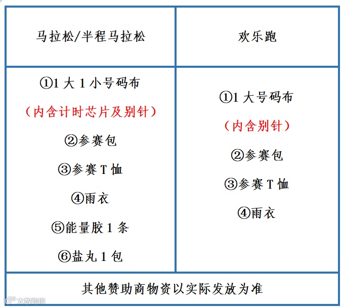 3.参赛服按照报名时选手提交的尺码进行现场发放,组委会特设服装尺码调换区备有少量服装进行调换,换完截止,如有尺码不符,建议选手之间自行调换。