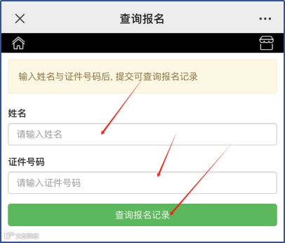 2.进入页面,填写姓名、证件号信息,点击查询报名记录。