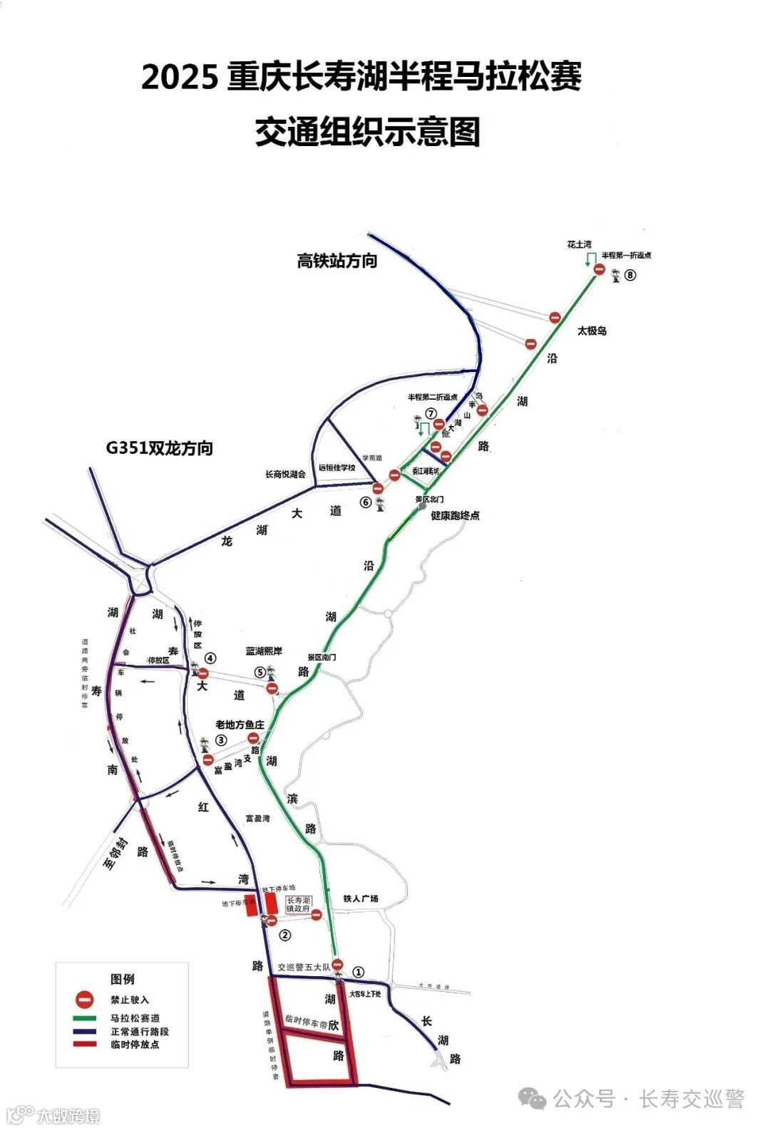 长寿湖半程马拉松赛将于2025年3月16日上午在重庆市长寿区长寿湖镇举行,根据《中华人民共和国道路交通安全法》第三十九条规定,决定对长寿湖旅游景区部分道路实施交通管制,公告如下: