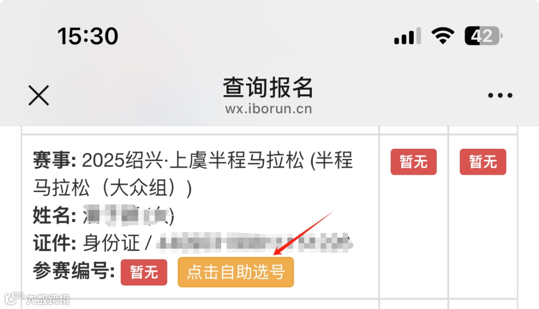 1.扫描下方二维码或关注“曹娥江半程马拉松赛”官方公众号,点击“自助选号”进入页面;