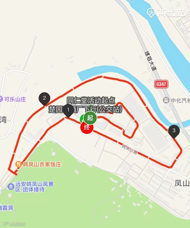 北京同仁堂(湖北)生物科技有限公司起点 → 厂区道路 → 鸣凤山停车场 → 楚园春路 → 鸣凤山路 → 北京同仁堂(湖北)生物科技有限公司终点(约四公里)