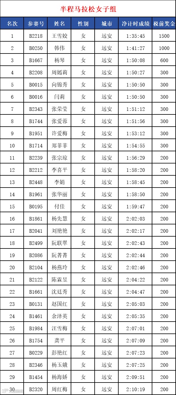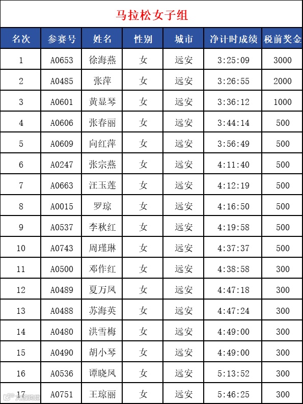 既获得马拉松、半程马拉松奖又获得远安县本地选手奖的参赛选手,奖金择高发放,不重复叠加发放。