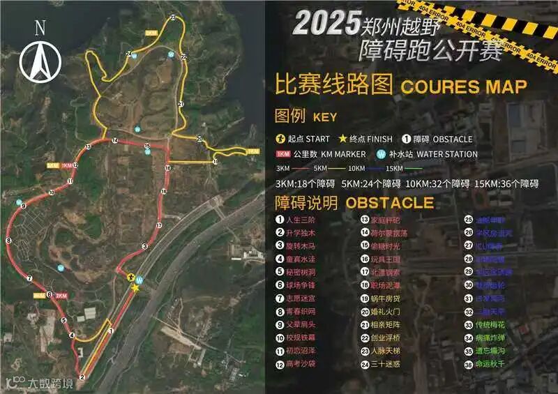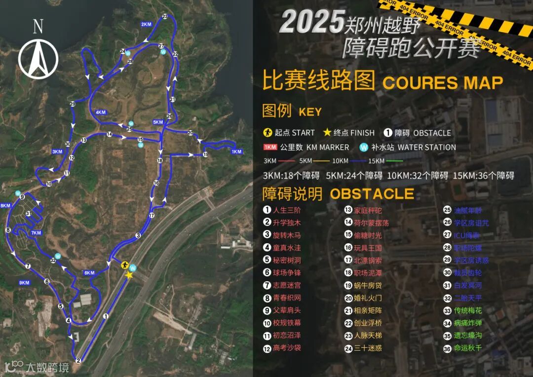 全程15公里,共设36个障碍,专业级运动竞技,严格执行判罚,专属颁奖仪式与丰厚奖金、奖牌、奖品;