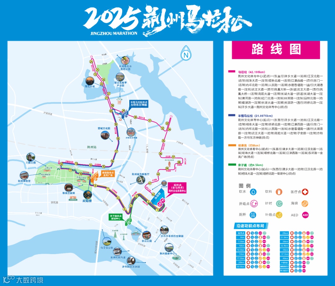 注:本路线图为初稿,后续赛事组委会将邀请专业丈量员对赛道进行精准丈量,确定每公里具体点位,并对赛事起点、终点进行流线规划,完成规划方案图后将在“荆州马拉松”微信公众号公布。