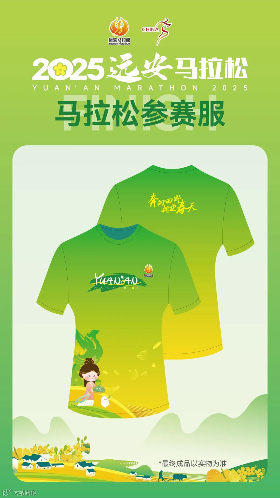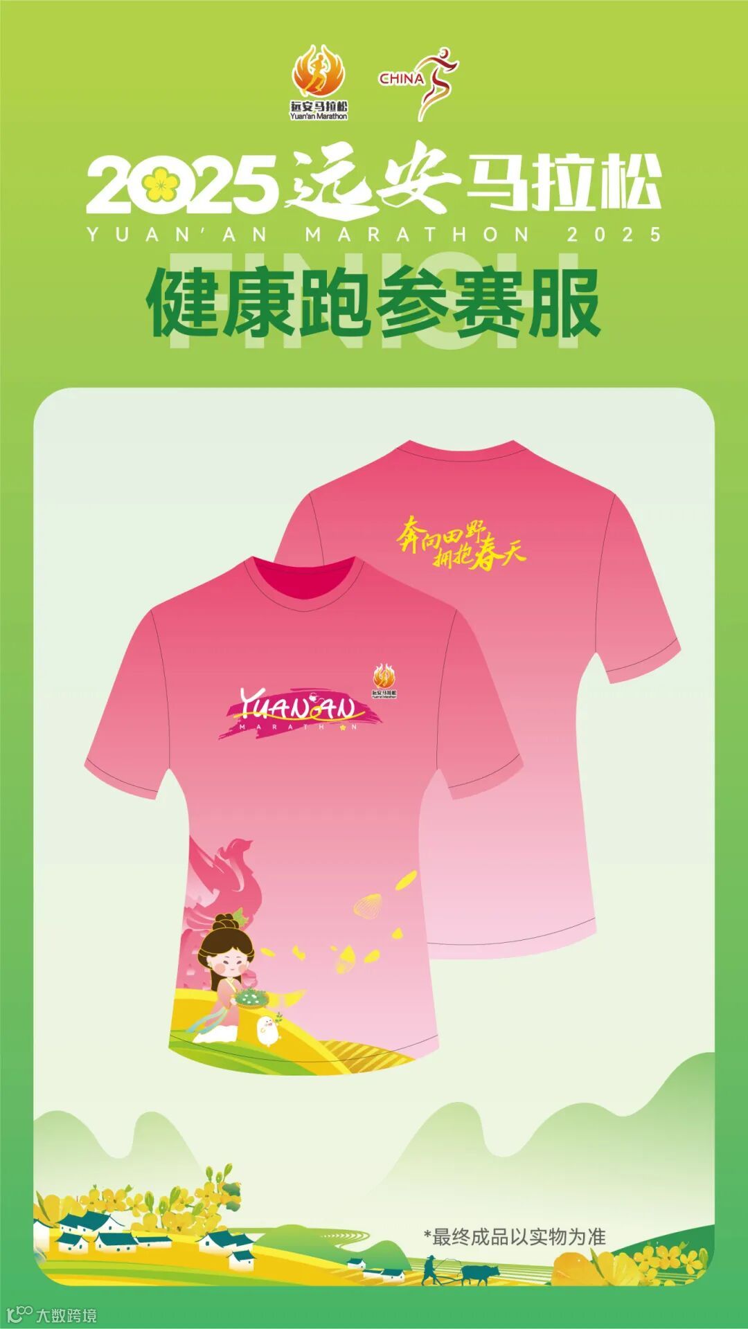 后背 “奔向田野·拥抱春天” 字样让选手跑动时,字迹如风中摇曳的桃枝,让每一次摆臂都挥洒春日浪漫。