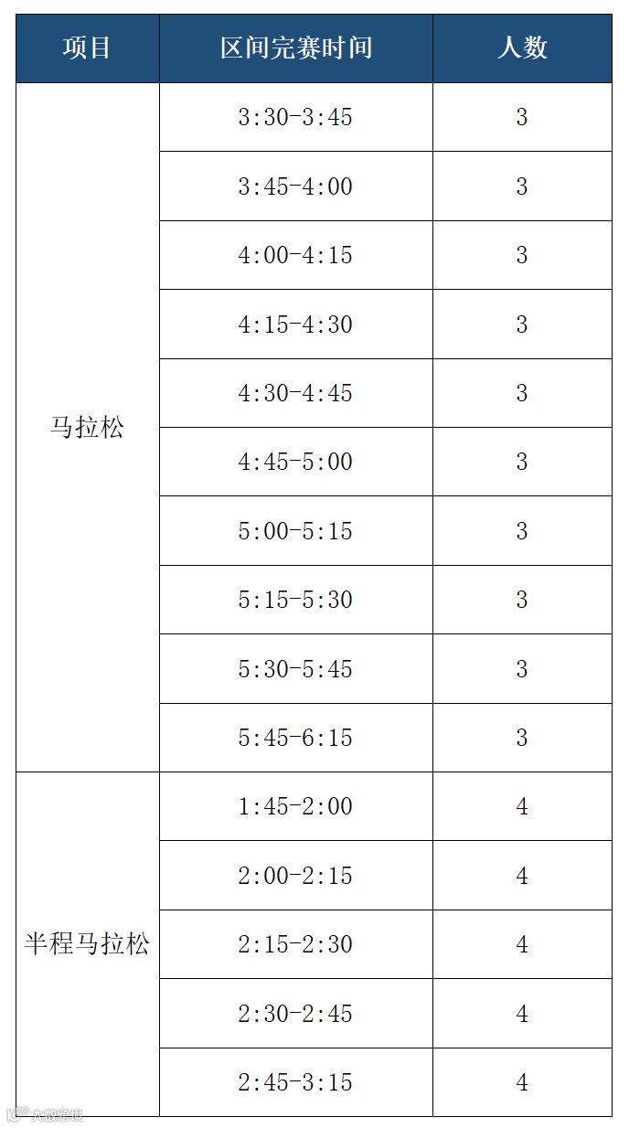 招募急救跑者50人,其中马拉松30人,半程马拉松20人。具体分配如下: