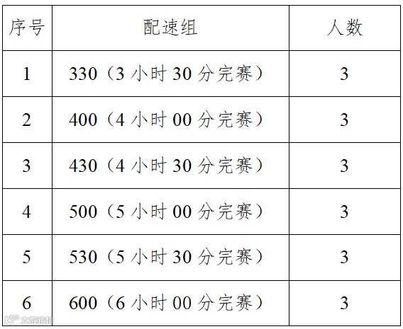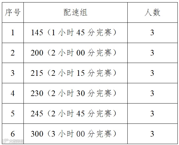 招募全程马拉松官方配速员18人,半程马拉松官方配速员18人,共36名,具体配速分配如下。