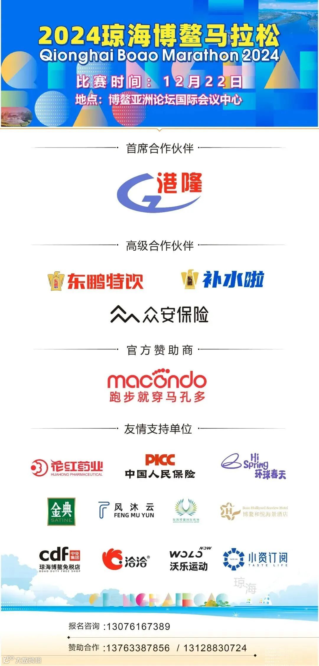 博鳌亚洲论坛会址(起点)-远洋大道-培兰大桥-迎宾路(折返)-龙潭路-大乐大桥-朝烈大桥-博文路-滨海大道(折返)-听海路-水城路-博鳌通道-博鳌亚洲论坛会址(终点)