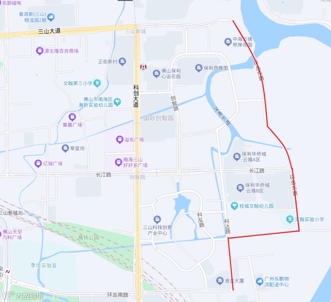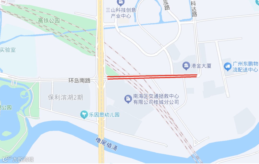 (二)环岛南路:活动预计使用时间 12 月 1 日 5 时至 12 时,环岛南路(季华实验室隧道至科创大道红绿灯路口)双向全封闭。交通管制时间 12 月 1 日 5 时至 14 时,实际解封时间以公安现场情况为准,道路封闭示意图如下:
