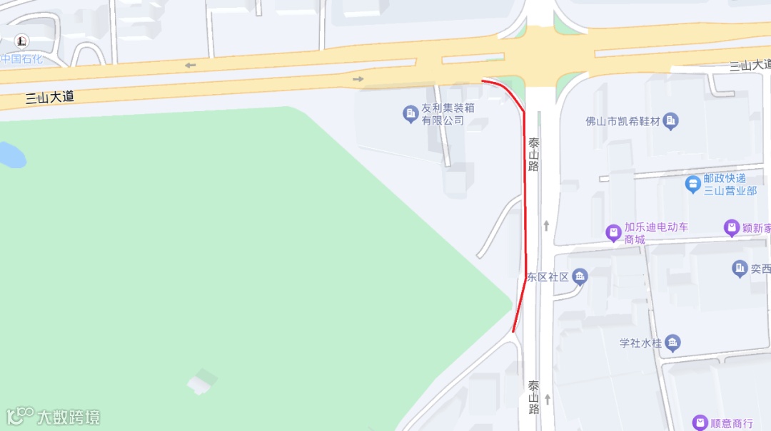 泰山路与三山大道路口交通管制示意图如下: