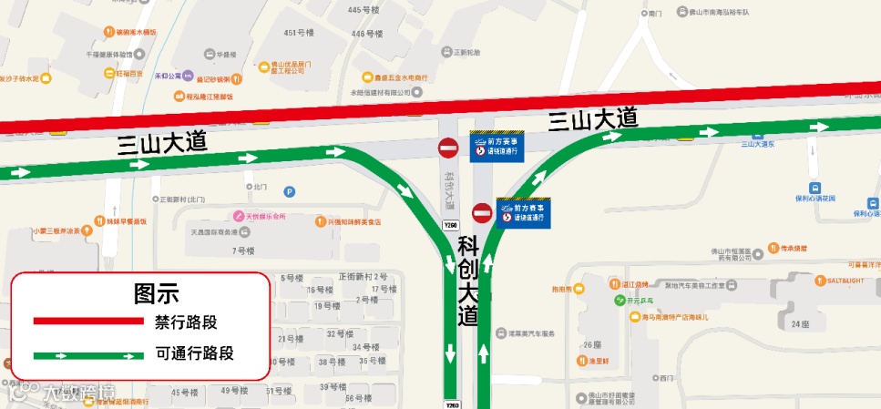 科创大道与三山大道路口交通管制示意图: