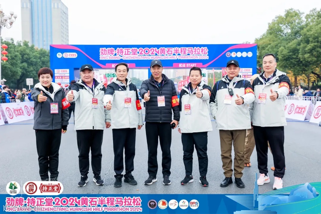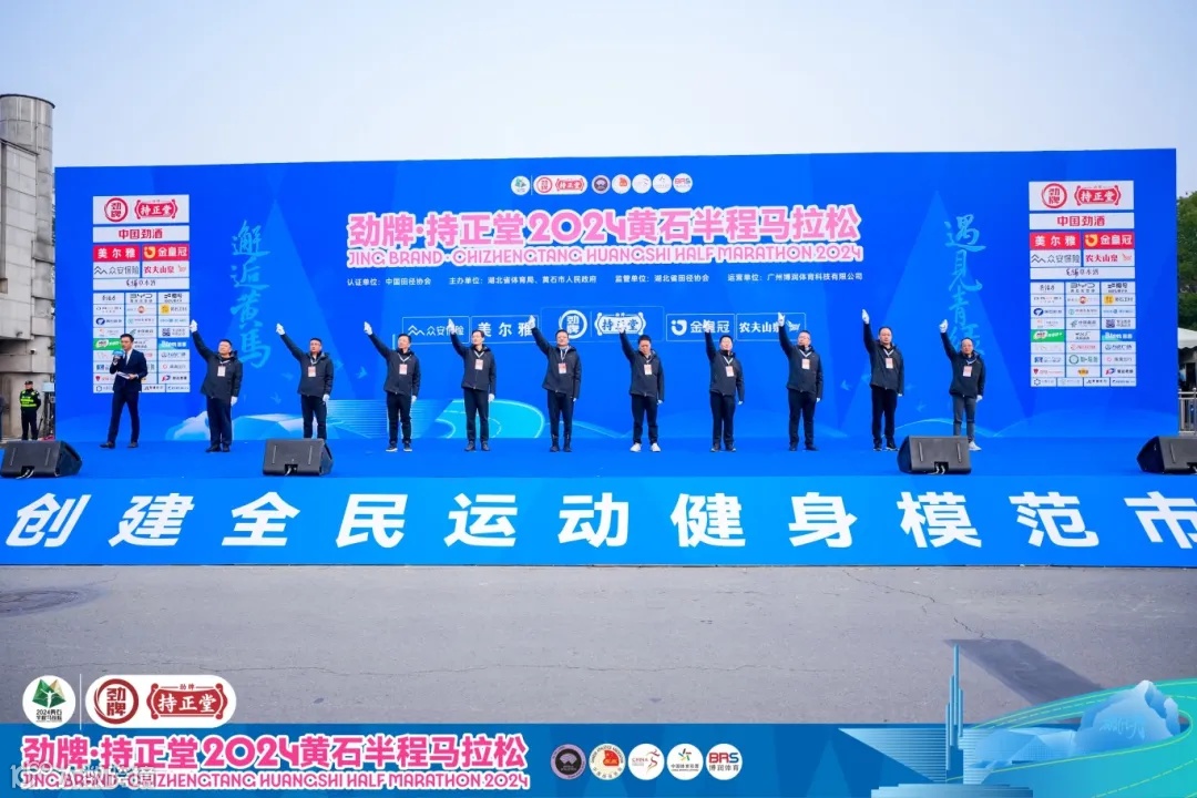 黄石市委副书记、市长吴之凌,湖北省体育局党组成员、副局长骆启义,市政府副市长、市公安局局长黄志勇,市政府副市长郭双喜,市政府副秘书长胡雄,省体育局群众体育处二级调研员胡伟,省体育局田径运动管理中心主任张华,市体育事业发展中心党组书记、主任孙小江,劲牌有限公司总裁王楠波,广州博润体育科技有限公司总裁易伟新出席起跑发令仪式。