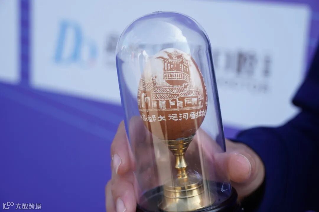为了带给广大跑者多样的赛事体验,作为咸鸭蛋之乡,运马组委会在完赛包里特别为选手准备了高邮特色产品—咸鸭蛋和界首茶干。值得一提的是,本届赛事邀请到世界吉尼斯纪录保持者李峥嵘老师以24年运马为灵感独家雕刻设计蛋雕作品,以及中国书法家协会会员徐晓思老师特别为选手题词作画的折扇和高邮特色咸鸭蛋礼盒,希望能为运动员留下一份宝贵的高邮回忆。