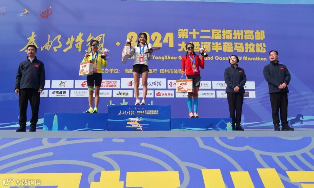 来自山东日照的于倩倩选手以1小时23分14秒的成绩斩获秦邮特钢·2024第十二届扬州高邮大运河半程马拉松,半程马拉松项目女子组冠军。来自江苏高邮的李隽选手以1小时24分56秒的成绩斩获半程马拉松项目女子组亚军,来自上海的刘娟选手以1小时25分33秒的成绩斩获半程马拉松项目女子组季军。