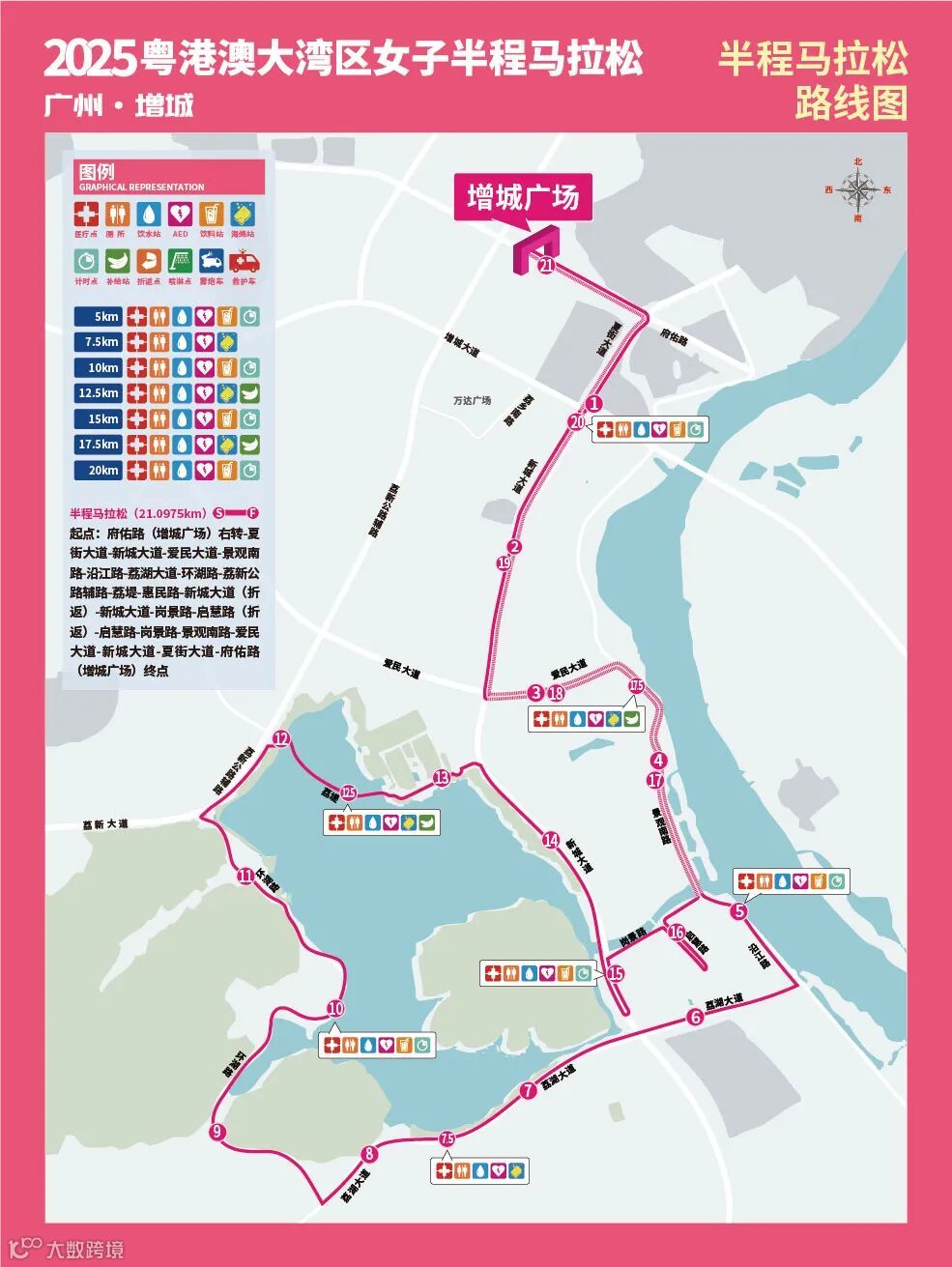 一步一景,一路一色。本届赛事的起点在增城广场,赛场内外,可以领略圣皇洲的风情、樱花园的浪漫、荔湖公园的旖旎、增江画廊的山水、万寿禅寺的庄严……碧道、花海、湖畔、江岸、飞鸟集、环跑径、古驿道等交错切换。