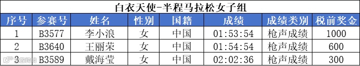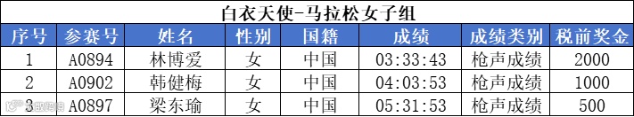 2024琼海博鳌马拉松已于12月22日圆满结束,为激发医护工作人员的参赛积极性和自豪感,增设医护赛中赛名次奖,分别奖励男女子,马拉松、半程马拉松枪声成绩前三名选手,奖励名单如下: