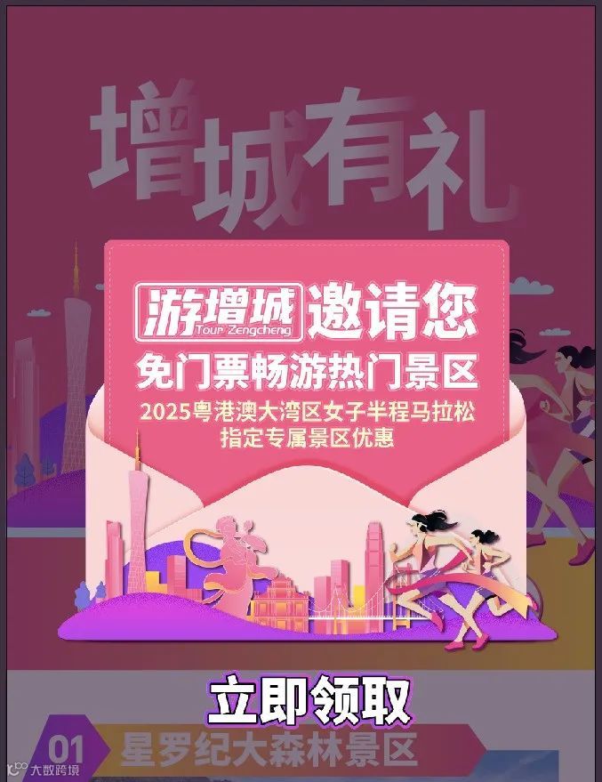 ✦凡报名参加2025湾区女子半马的所有参赛跑友均可免费畅游15处增城热门景区景点,景区门票及部分游玩项目总价值1617元。